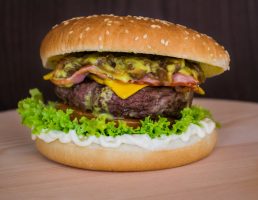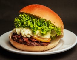 A perfectly seasoned ...Read more A perfectly seasoned beef patty, covered with melted cheese and topped with pickles, onion, ketchup and mustard- all encased in a soft brioche ...Read less